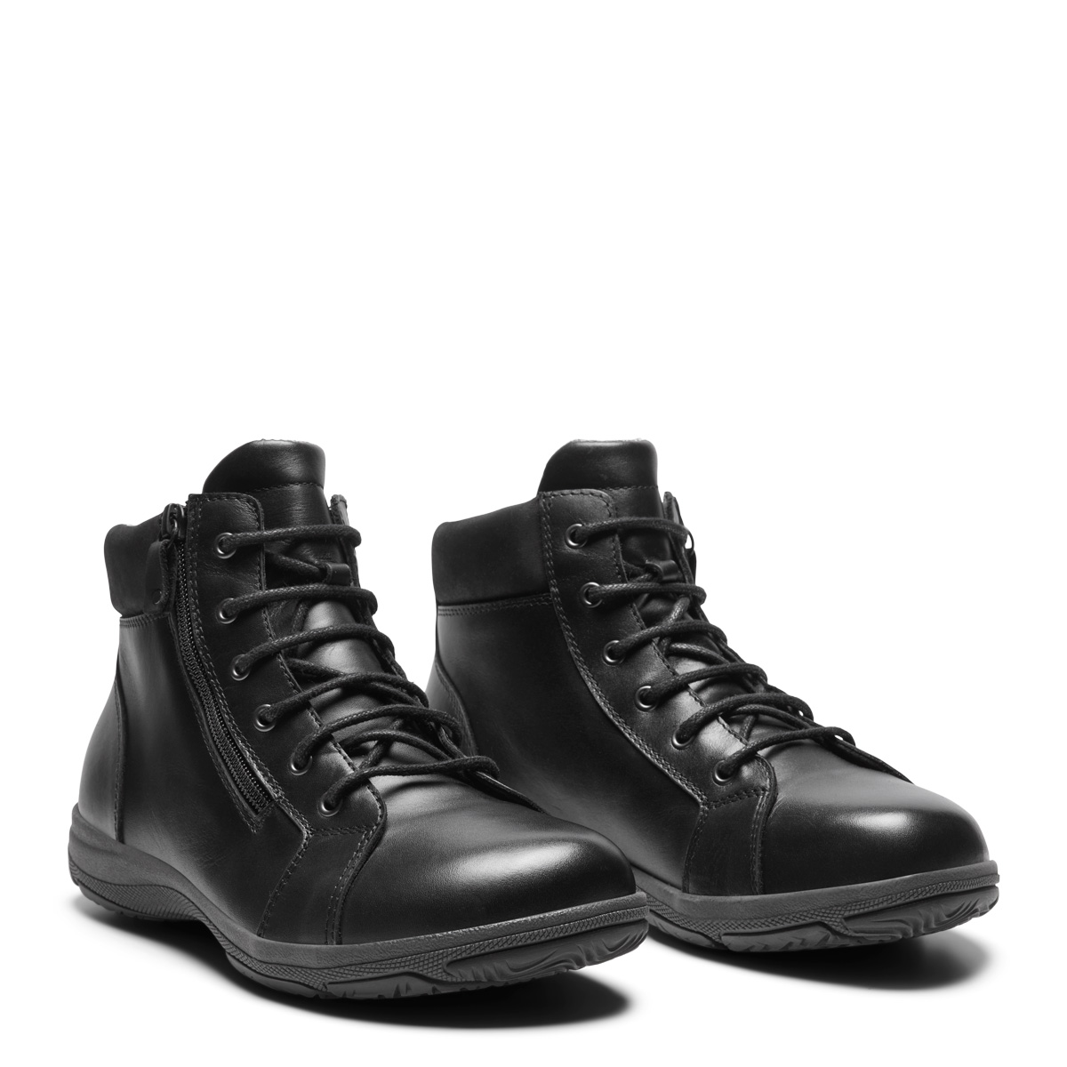 Damboots med snörning och blixtlås. Vanligt läder. Foder med vattenavvisande membran. Yttersula i TR. Hällyft: 22 mm - fall: 12 mm. Löstagbar 6 mm stötdämpande Protektor® innersula.