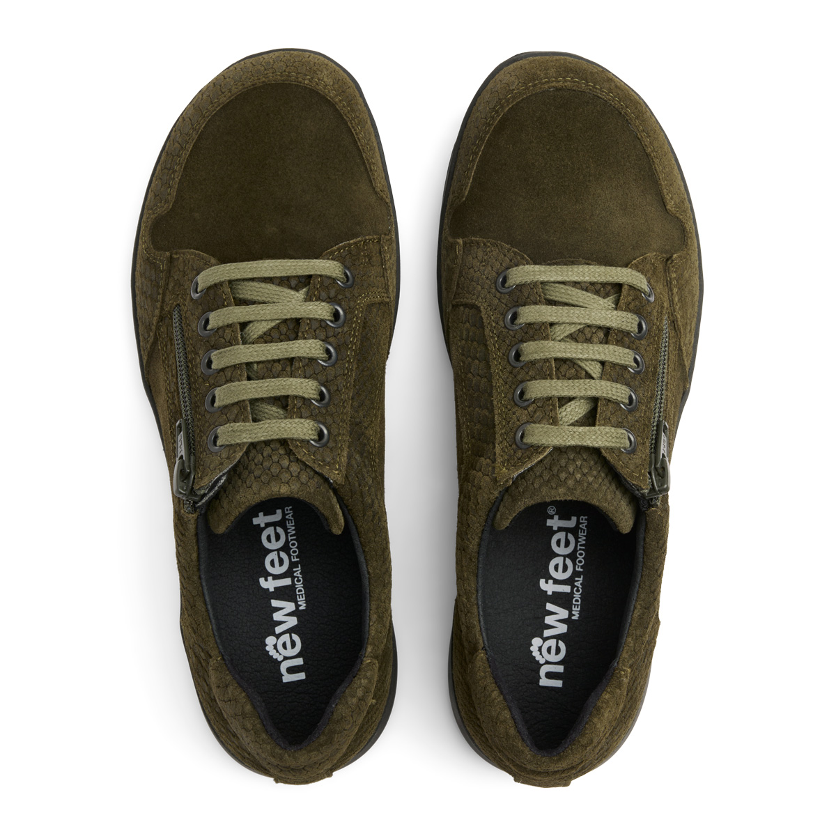 Skor med snörning och dragkedja. Mocka med struktur. Yttersula i TR med lätt rullfunktion. Avtagbar 6 mm stötdämpande Protektor® innersula.