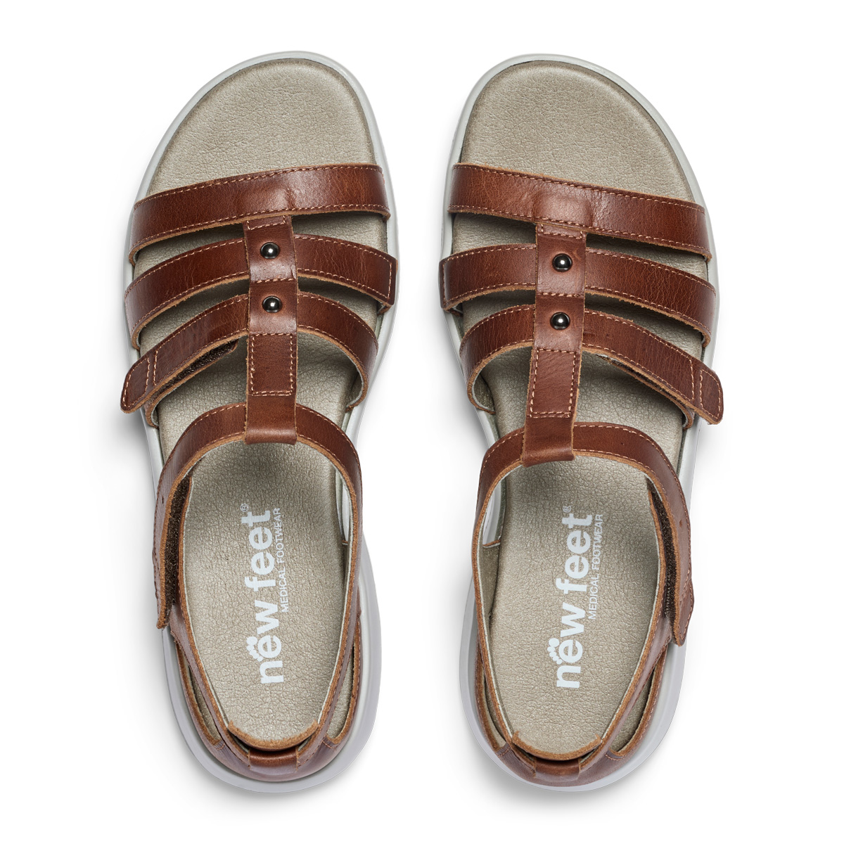 Denna damsandal är skapad med en halvöppen hälkappa och två kardborreknäppningar framtill som gör det enkelt att justera efter just din fot. Den stabila hälkappan syftar till att hålla foten exakt i skorna för att uppnå bästa möjliga avlastning för dina fötter. Vi har gjort kardborrebanden extra långa och indelade i sektioner, vilket gör det enkelt för dig att justera och eventuellt klippa remmarna så att de passar just din fot.