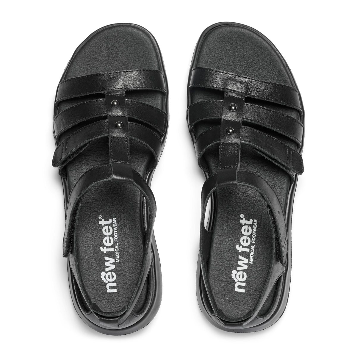 Denna damsandal är skapad med en halvöppen hälkappa och två kardborreknäppningar framtill som gör det enkelt att justera efter just din fot. Den stabila hälkappan syftar till att hålla foten exakt i skorna för att uppnå bästa möjliga avlastning för dina fötter. Vi har gjort kardborrebanden extra långa och indelade i sektioner, vilket gör det enkelt för dig att justera och eventuellt klippa remmarna så att de passar just din fot.
