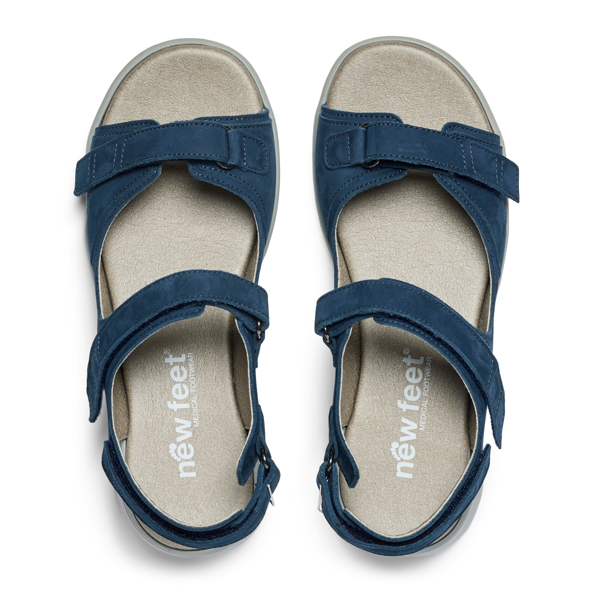 Därför har denna New Feet-sandal både kardborreband och flera anpassningsmöjligheter. Kardborrebanden är extra långa och kan enkelt justeras i längd för att passa perfekt till just din fot.