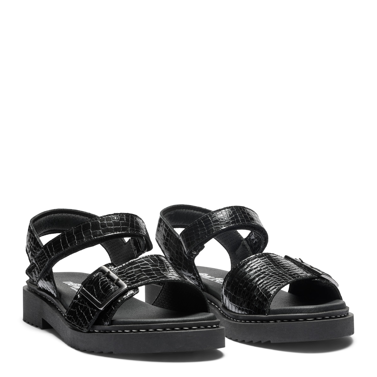 Denna sandal är gjord av högkvalitativt texturerat lackläder som är lätt för dig att underhålla och rengöra. Det blanka lädret gör också sandalen klassisk och självklar att använda till både vardag och fest.