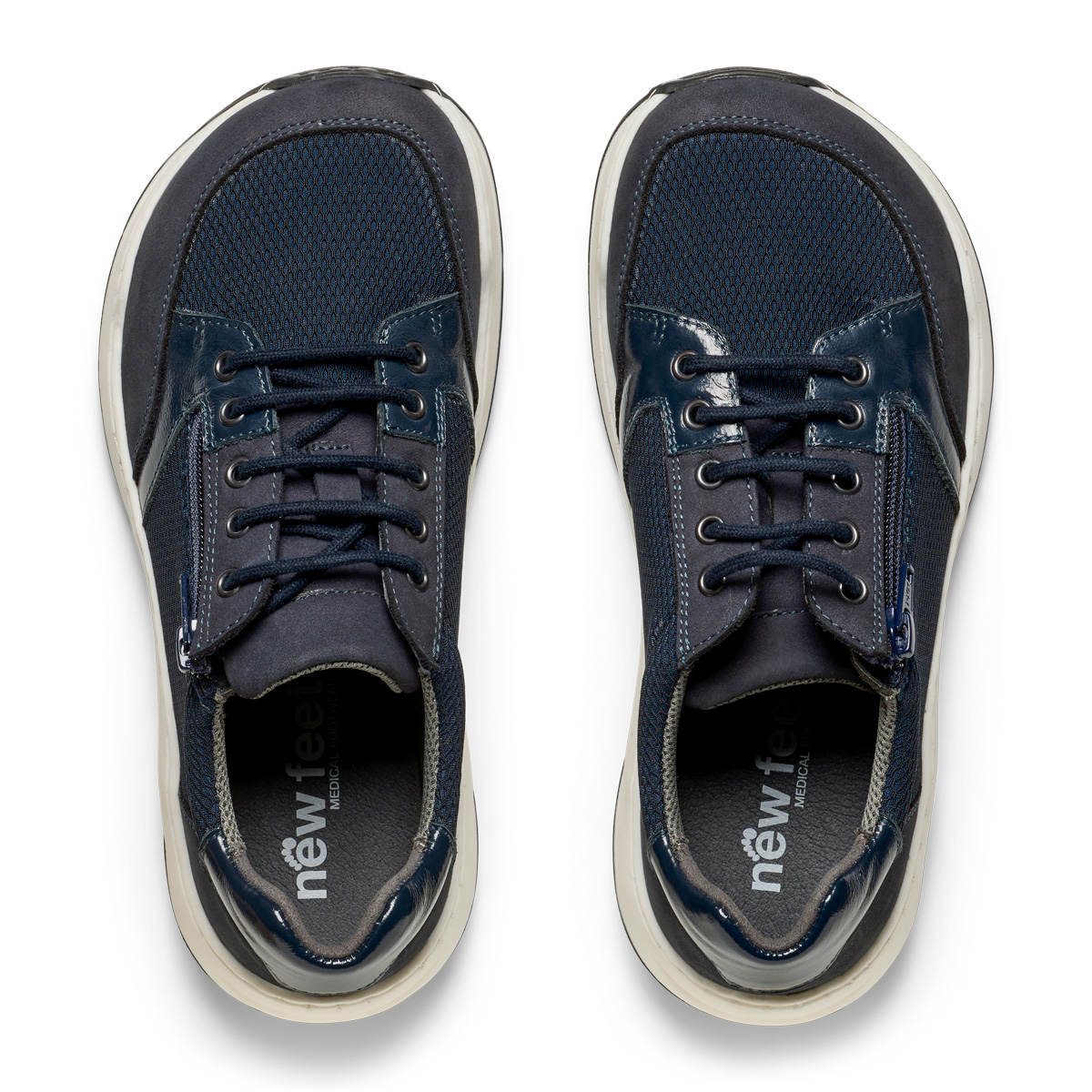 Den här snörskon med praktisk dragkedja från New Feet är designad med en extra bred tåbox som ger utrymme för tårnas naturliga rörelse när du går.